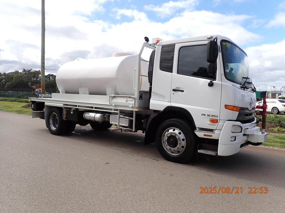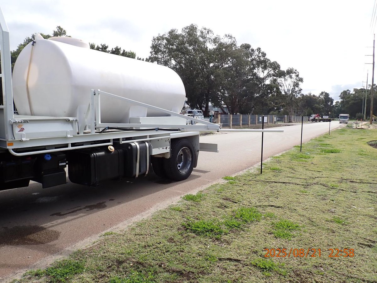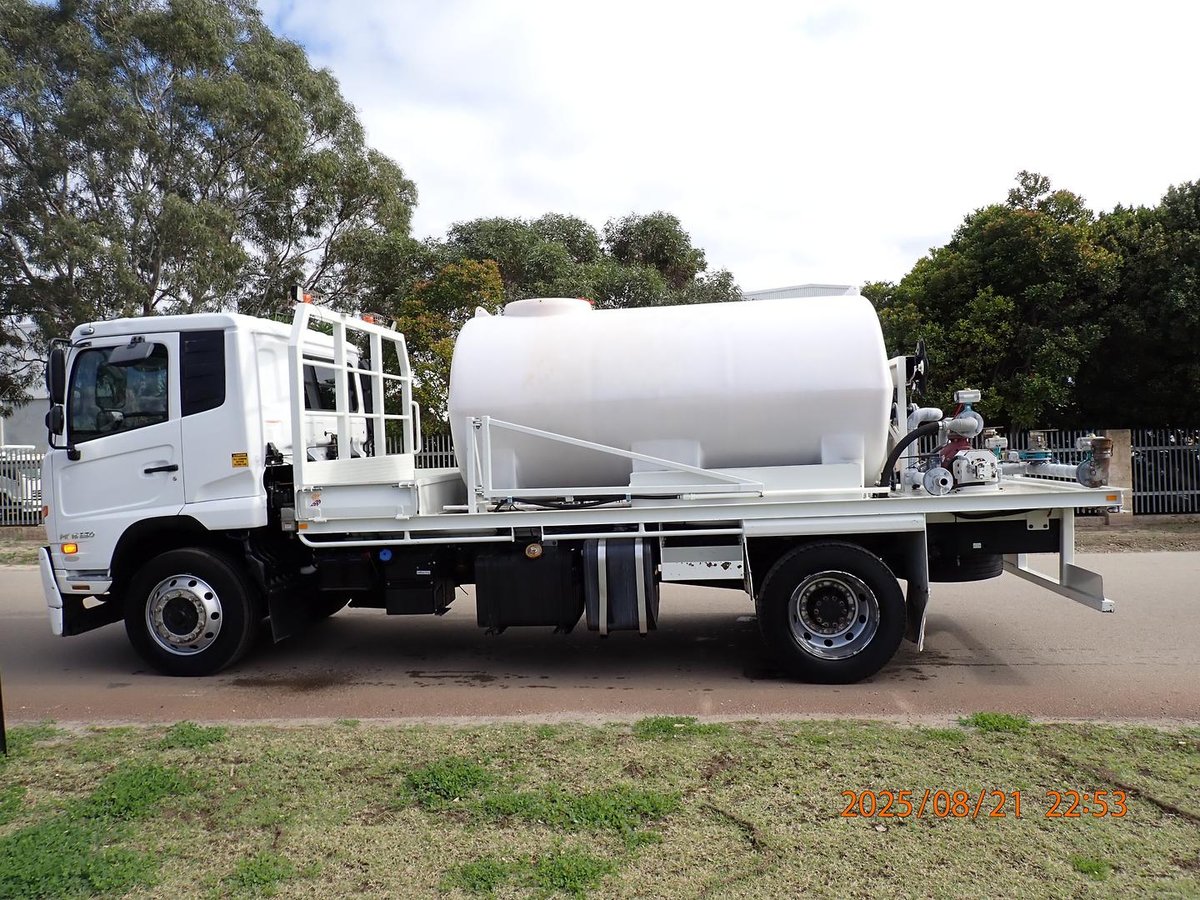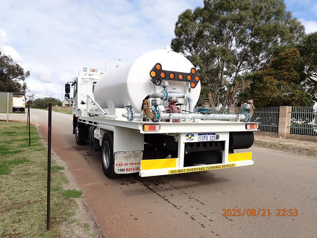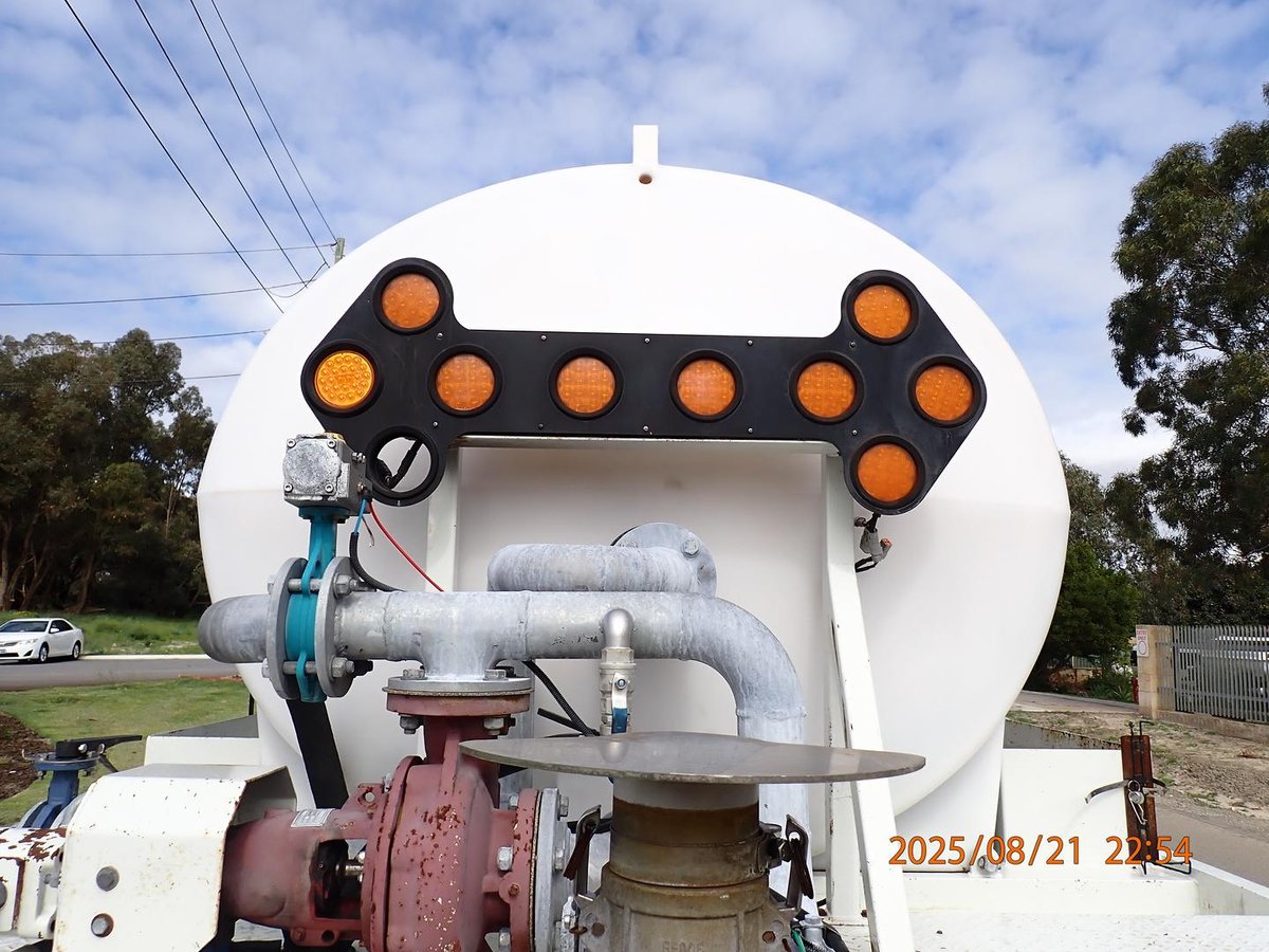 Just landed this local Government Shire Water Cart fitted with a 7000L Poly Water Tank and Hydraulic 3'' Water Pump, front mounted water cannon, 3 x batter sprays to the rear, and a pneumatic swing out water spray bar on the LHS.